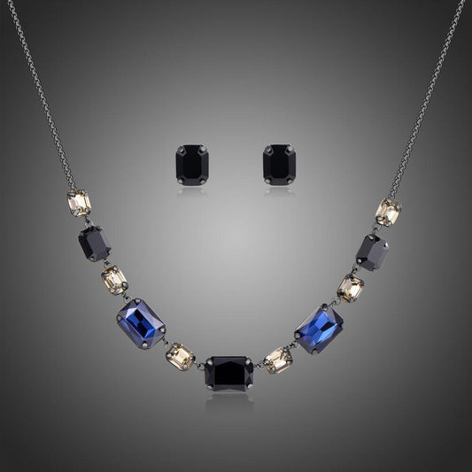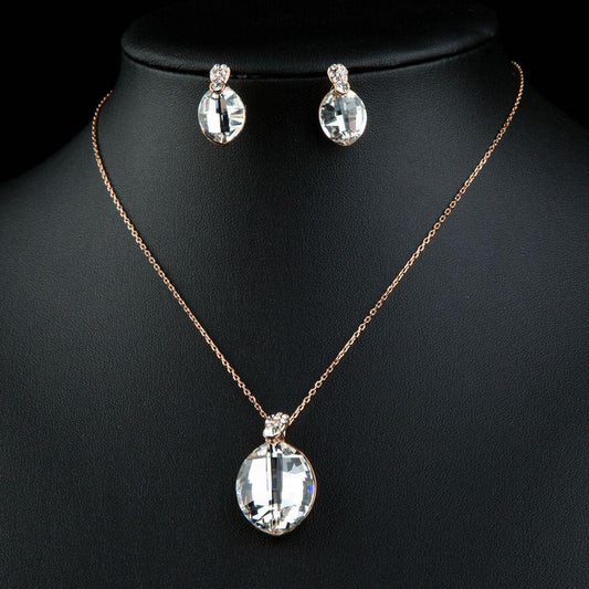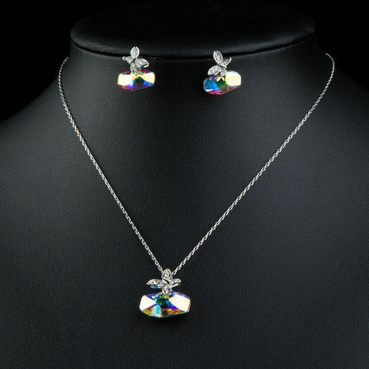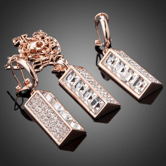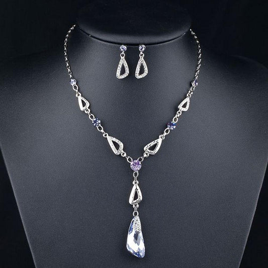 Geometrical Crystal Drop Earrings and Pendant Necklace Set