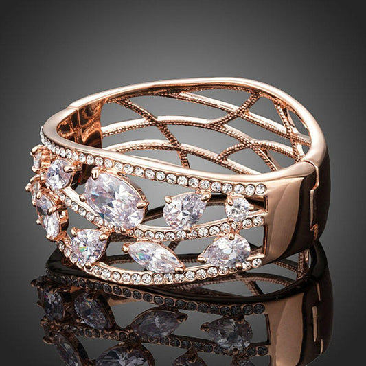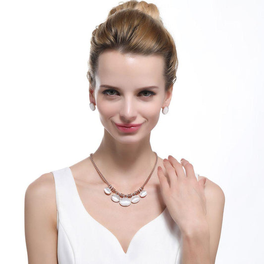 Cat’s Eye Stone Rose Gold Color Oval Rhinestone Jewelry Necklace Set