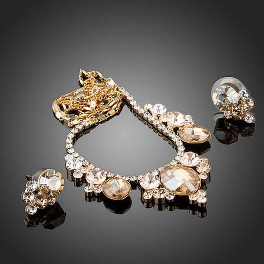 Champagne Crystal Flower Stud Earrings & Pendant Necklace Set