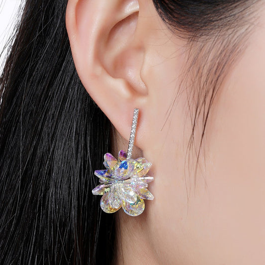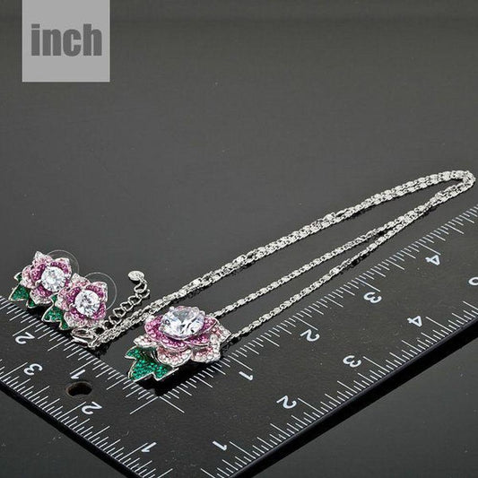 Exclusive White Gold Stellux Austrian Crystal Flower Stud Earrings and Necklace Set