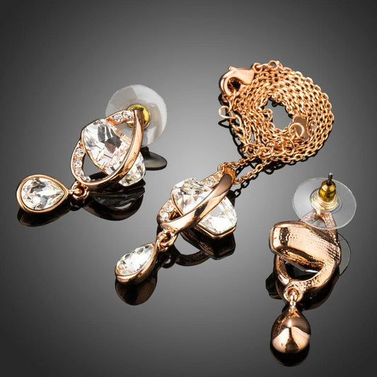 White Gold Stellux Drop Earrings and Water Drop Cubic Zirconia Necklace Set