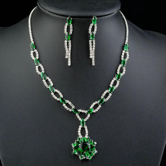 Green Cubic Zirconia Necklace + Earrings Sets -KJG0147