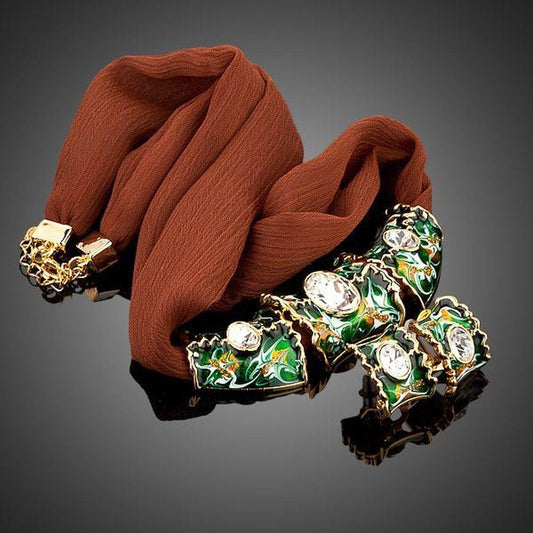 Green Cubic Zirconia Flower Necklace + Drop Earrings Set