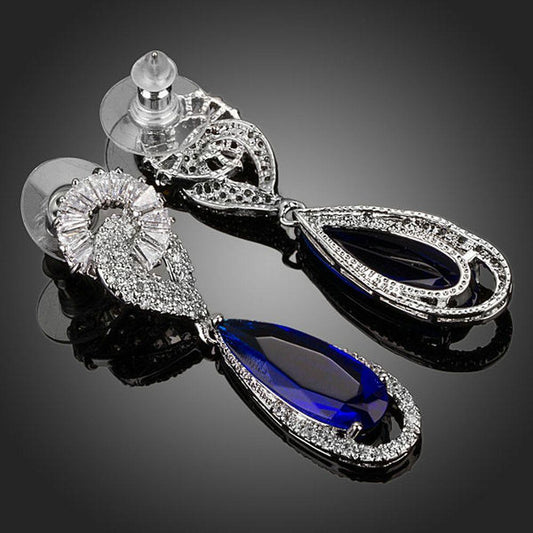 Royal Blue Cubic Zirconia Drop Earrings -ME0108