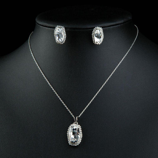 Luxury Cubic Zirconia Necklace and Drop Earrings Jewelry Set