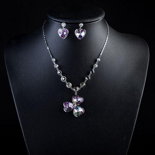 White Gold Stellux Austrian Crystal Heart Drop Earrings and Flower Pendant Set