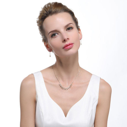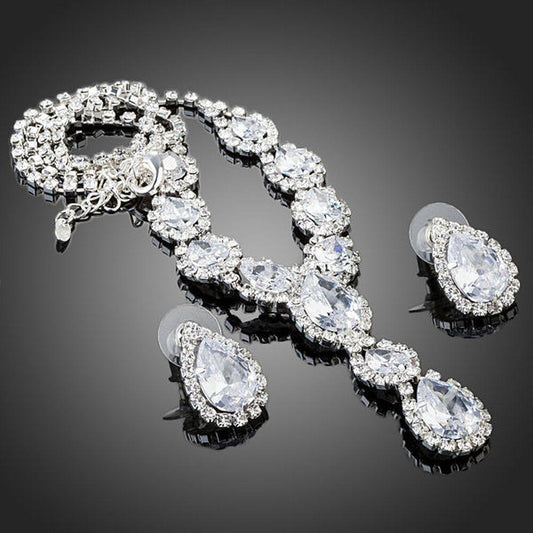 Bright White Cubic Zircon Necklace and Stud Earrings Set