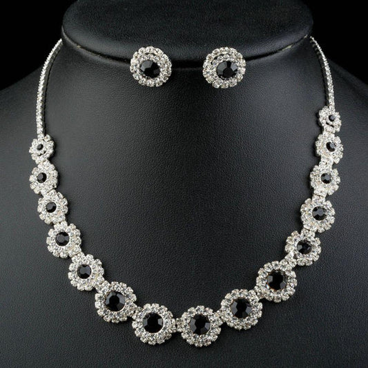 Classic Black Match Clear Cubic Zirconia Necklace and Stud Earrings Set