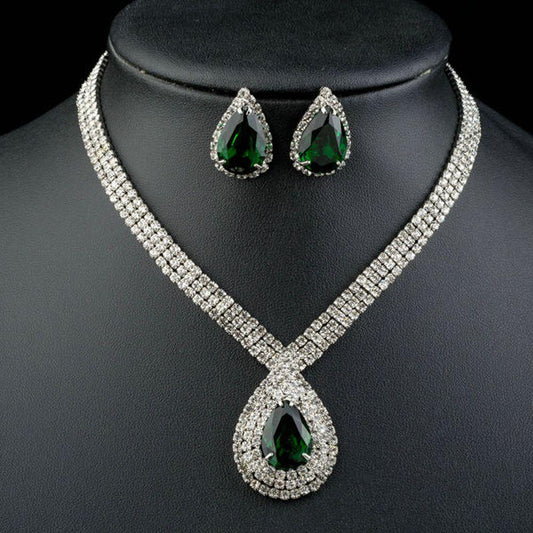 Dark Green Cubic Zirconia Water Drop Jewelry Set