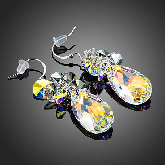 White Gold Color Big Blue Crystal with Necklaces & Earring Jewelry Set