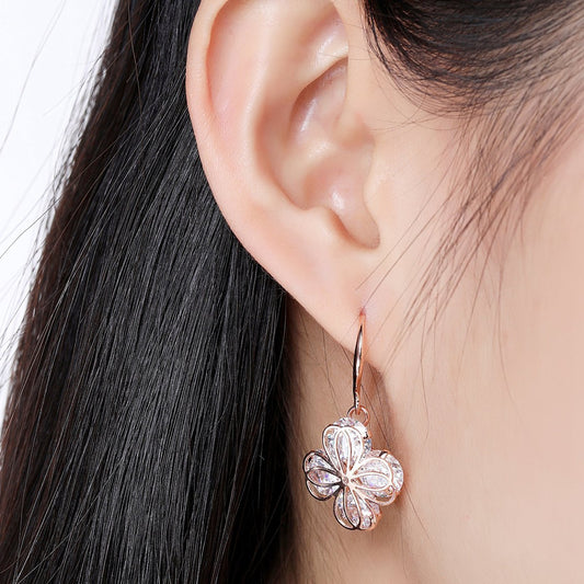 Flower Cubic Zirconia Drop Earrings -KPE0330