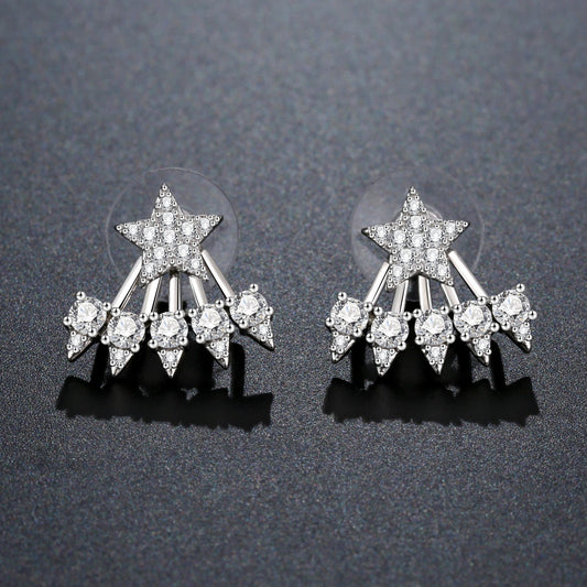 Cubic Zirconia Pentagram Drop Earrings -KPE0354