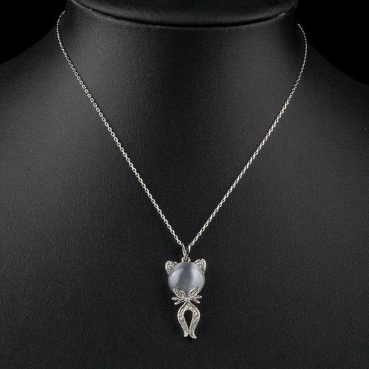 Gray Cat Crystal Necklace KPN0103
