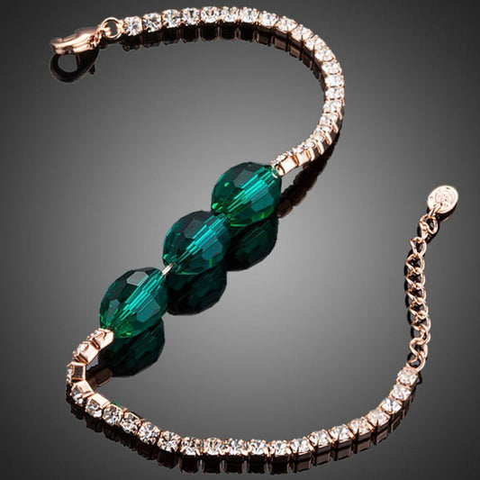 Green Crystals Link Chain Bracelet