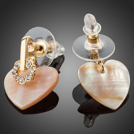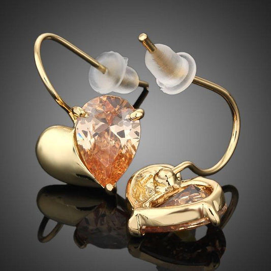 Gold Plated Crystal Light Peach Heart Earrings