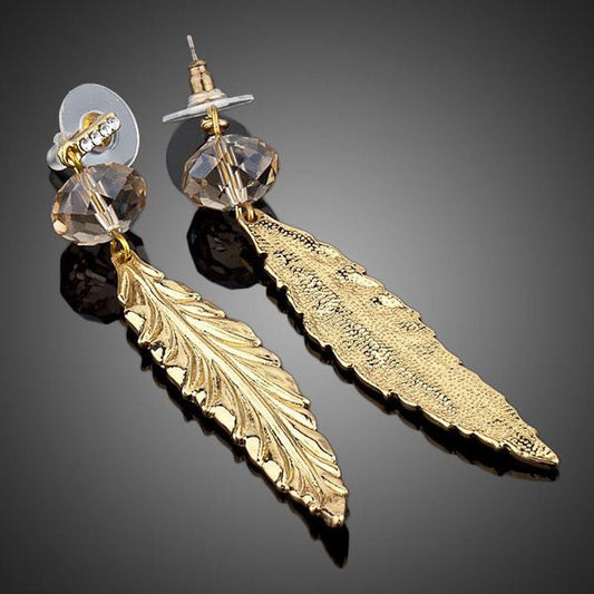 Gold Plated Leaf Drop Earrings