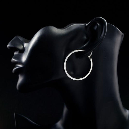 White Gold Classic Hoop Earrings -KPE0023