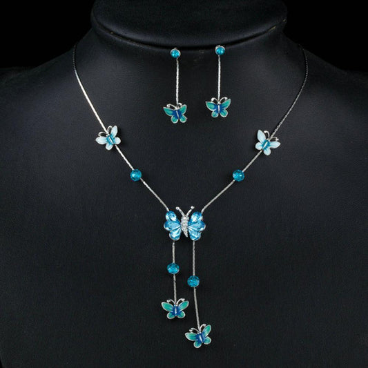 Stellux Austrian Crystal Butterfly Oil Painting Pattern Drop Earrings and Necklace Set