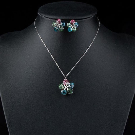 White Gold Multi Color Flower Stellux Austrian Necklace and Earrings Set