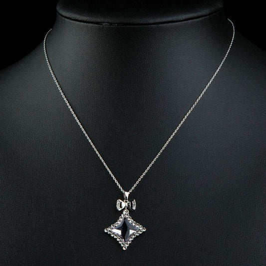 White Gold Color Quadrilateral Bowknot Crystals Long Link Chain Necklace KPN0202