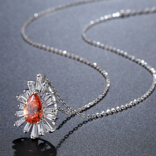 Orange Cubic Zirconia Chain Pendant Necklace KPN0240