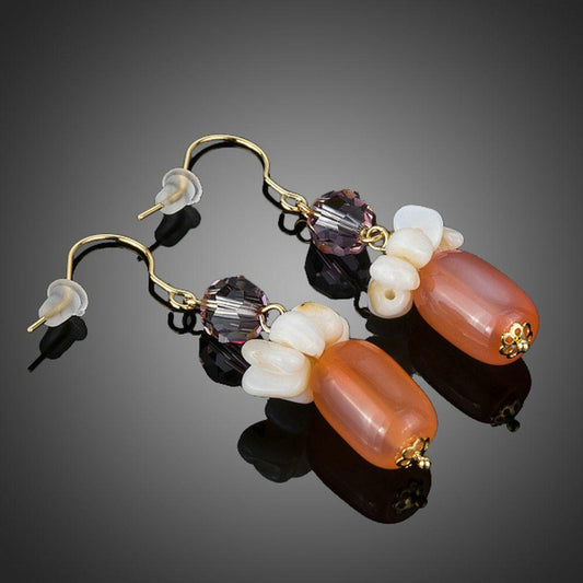 Peach Crystal Oval Drop Earrings