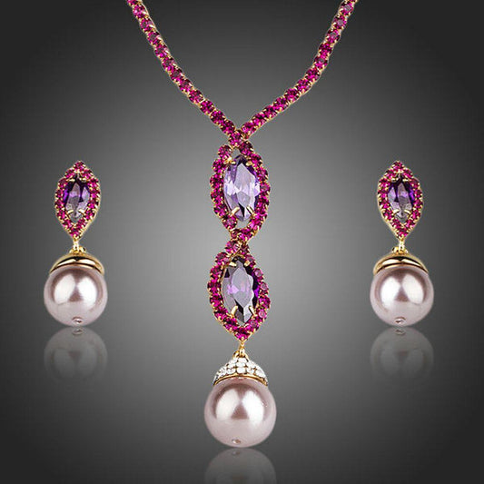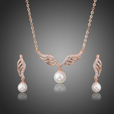 Rose Gold Color Austria Crystal Paved & Simulated Pearl Jewelry Set