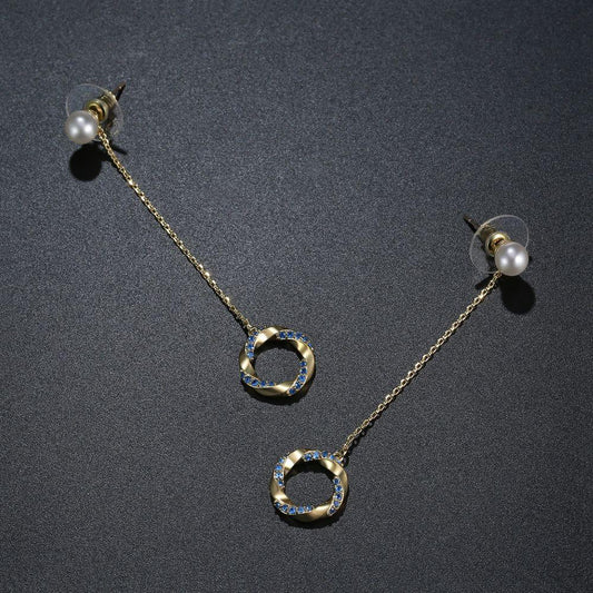 Blue Cubic Zirconia Pearl Dangle Earrings -KFJE0401