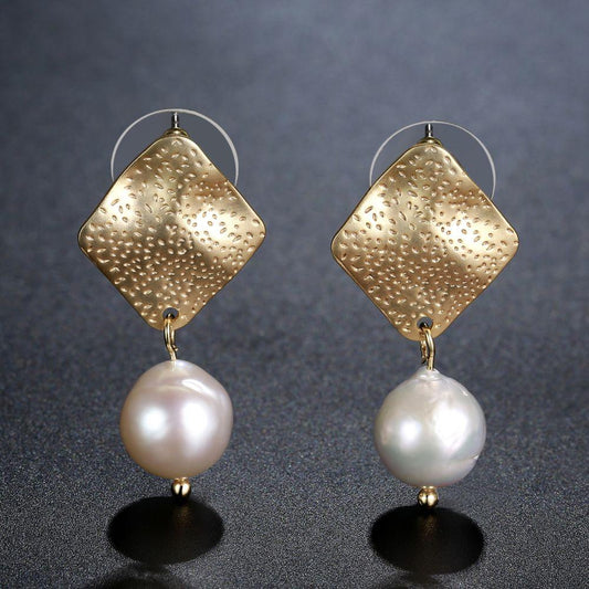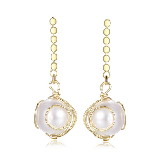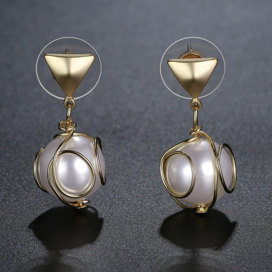 Geometric Pearl Water Drop Dangle Earrings -KFJE0420