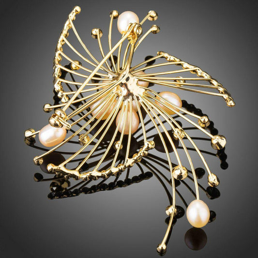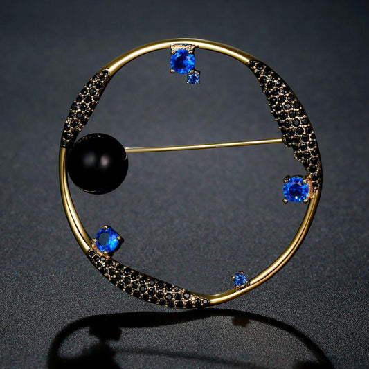 Round Blue Cubic Zirconia Stars and Black Pearl Earth Brooch -KFJB0105