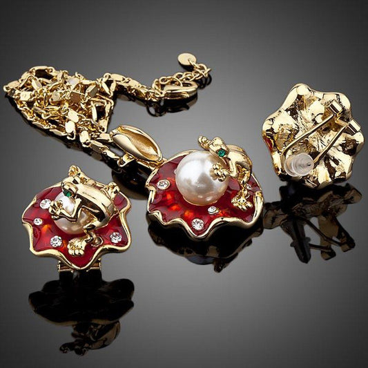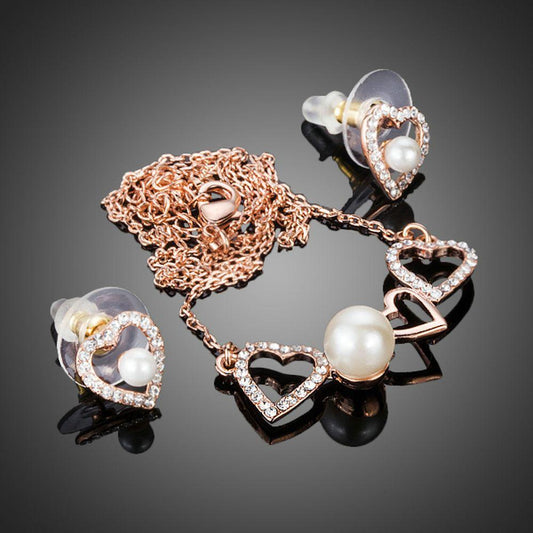 Hearts with a Pearl Stud Earrings + Pendant Necklace Set