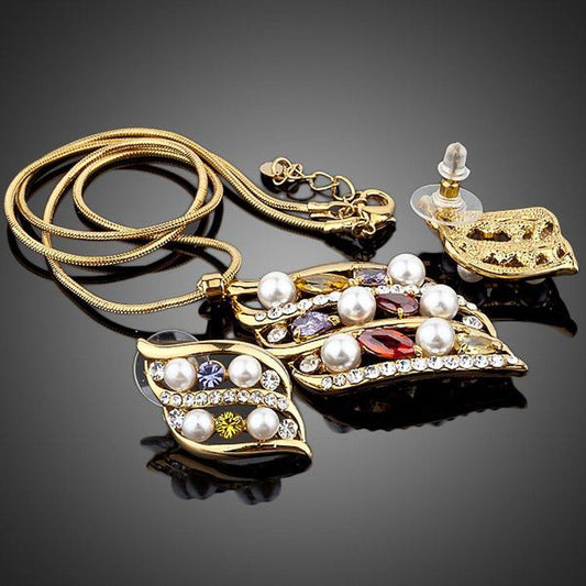 Gold Plated Multi Color Crystal Stud Earrings & Pendant Set