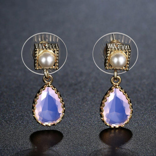 Pink Opal Crystal Drop Earrings -KFJE0411