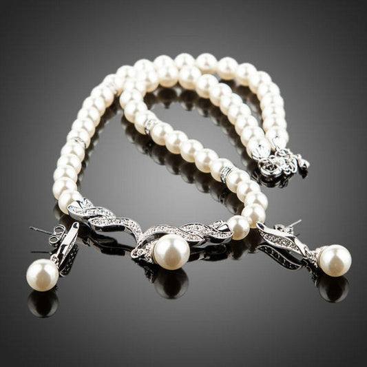Round Pearl Strand Earrings and Necklace Jewelry Set