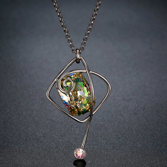 Rectangle Green Austrian Crystals Long Pendant Choker KPN0295