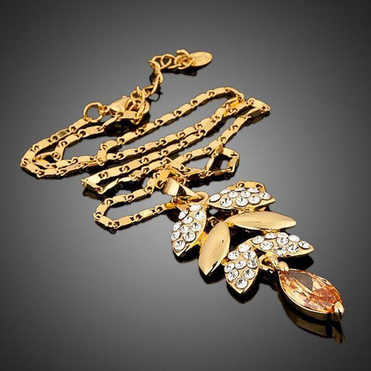 Butterfly on Autumn Leaf Crystal Pendant Necklace