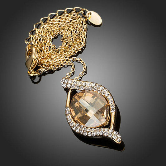 Geometric Champagne Crystal Pendant Necklace