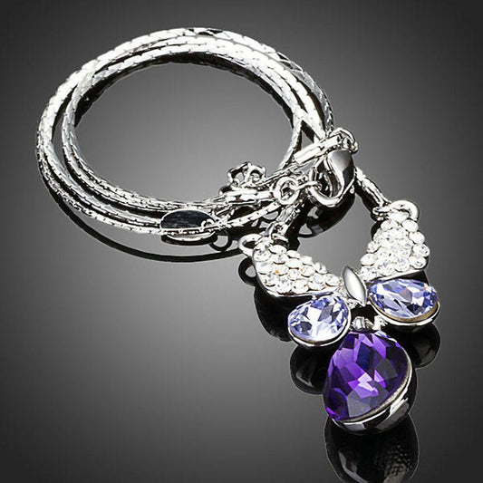 Purple Water Drop Butterfly Pendant Necklace