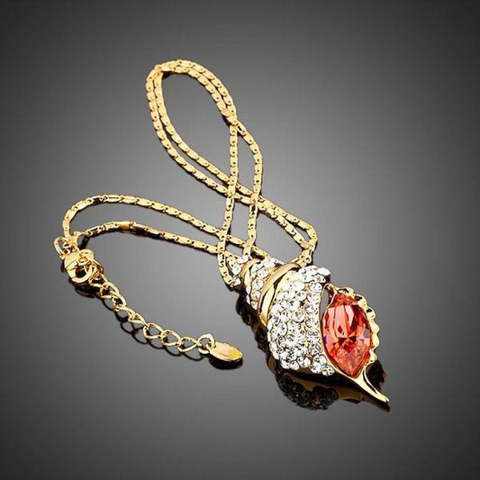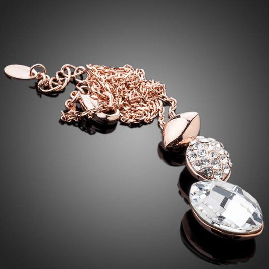 Leaf Shaped Crystal Pendant Necklace