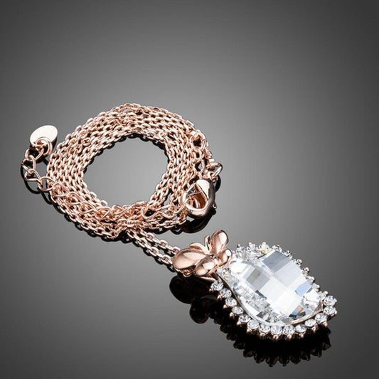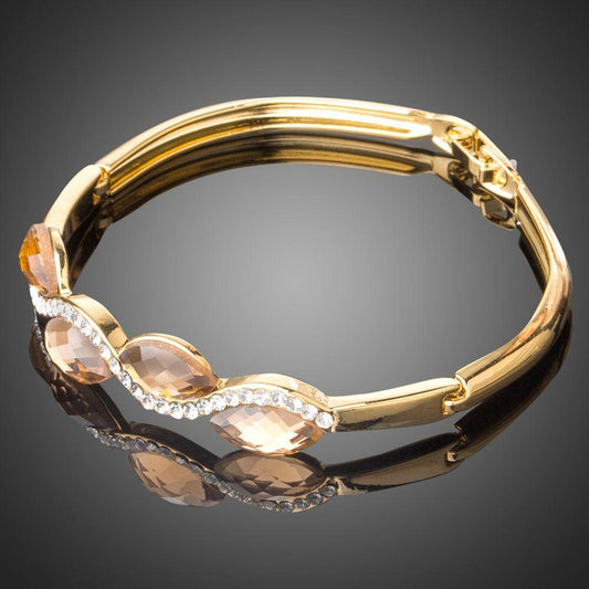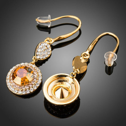 Champagne Crystal Flower Stud Earrings & Pendant Necklace Set