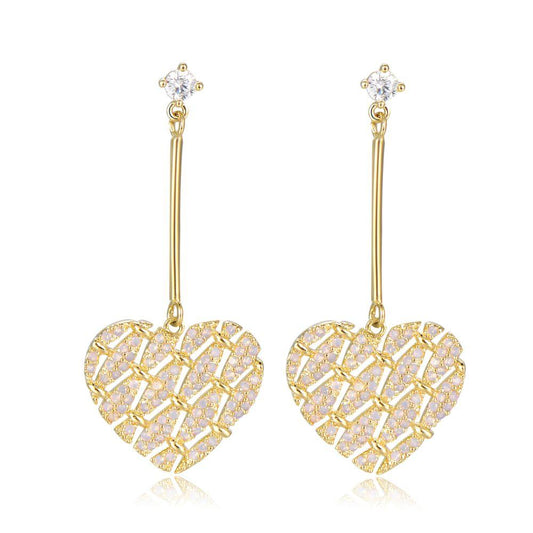 Light Pink Zirconia Heart Drop Earrings -KFJE0405