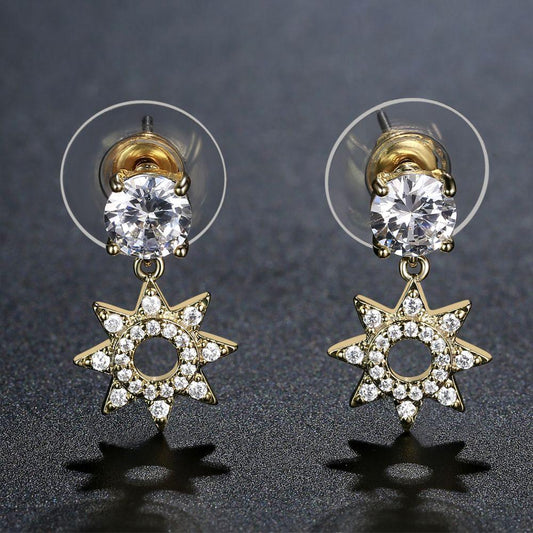 Paved CZ Crystal Flower Drop Earrings -KFJE0417