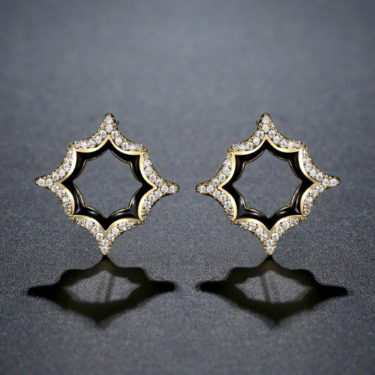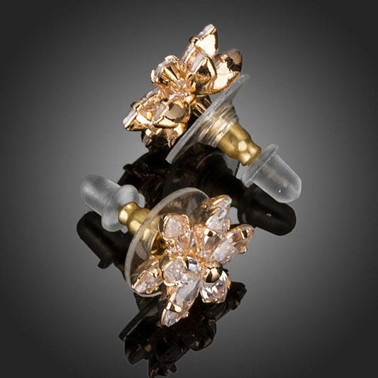 Gold Plated Cubic Zirconia Flower Shaped Stud Earrings