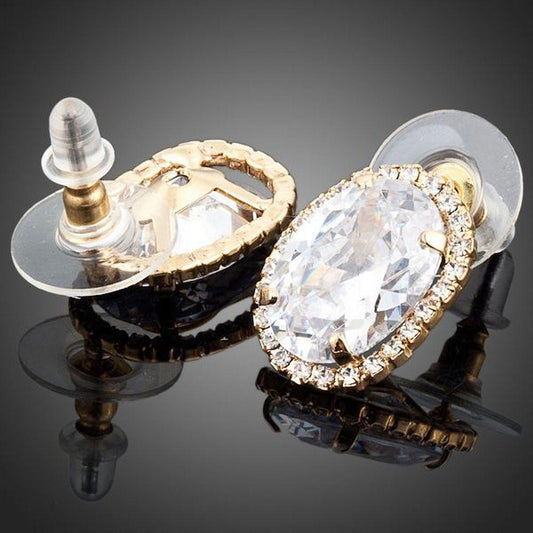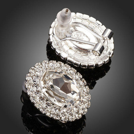 Oval Thick Silver Cubic Zirconia Stud Earrings