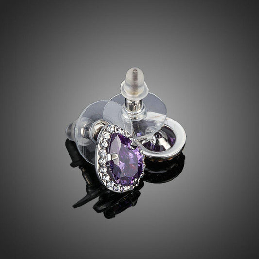 Purple Cubic Zirconia Pear Shaped Stud Earrings