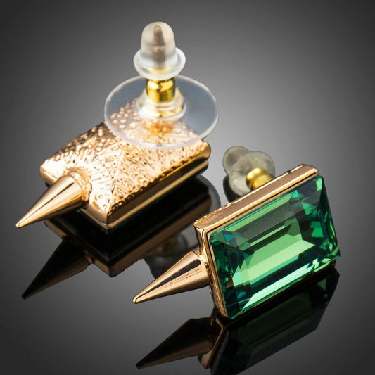 Green Rectangle Crystal Stud Earrings