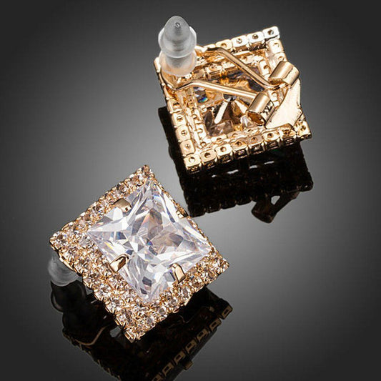 Gold Plated Square Cubic Zirconia Stud Earrings