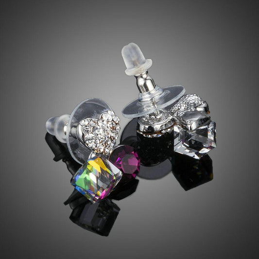 Heart Cube Circle Together Stud Earrings