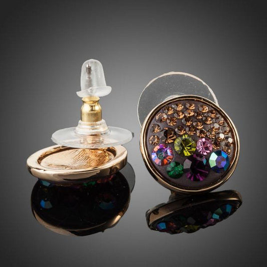 Round Chocolate Crystal Stud Earrings