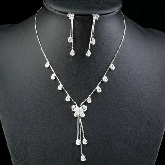 Butterfly Cutting Cubic Zirconia Necklace and Drop Earrings Set